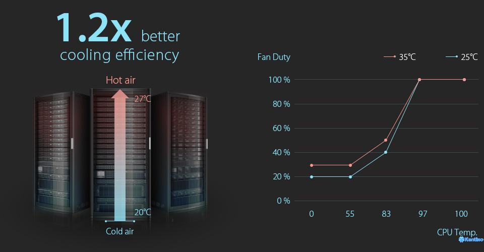 ESC8000 G4 is equipped with ASUS exclusive thermal radar technology with temperature sensors located on the CPU, GPU and DIMM. This design allows monitoring of internal and external temperatures and allows dynamic control of the fan load curve, reduction of fan consumption by up to 20% and reduction of TCO, which is ideal for data centers with extreme operating loads.